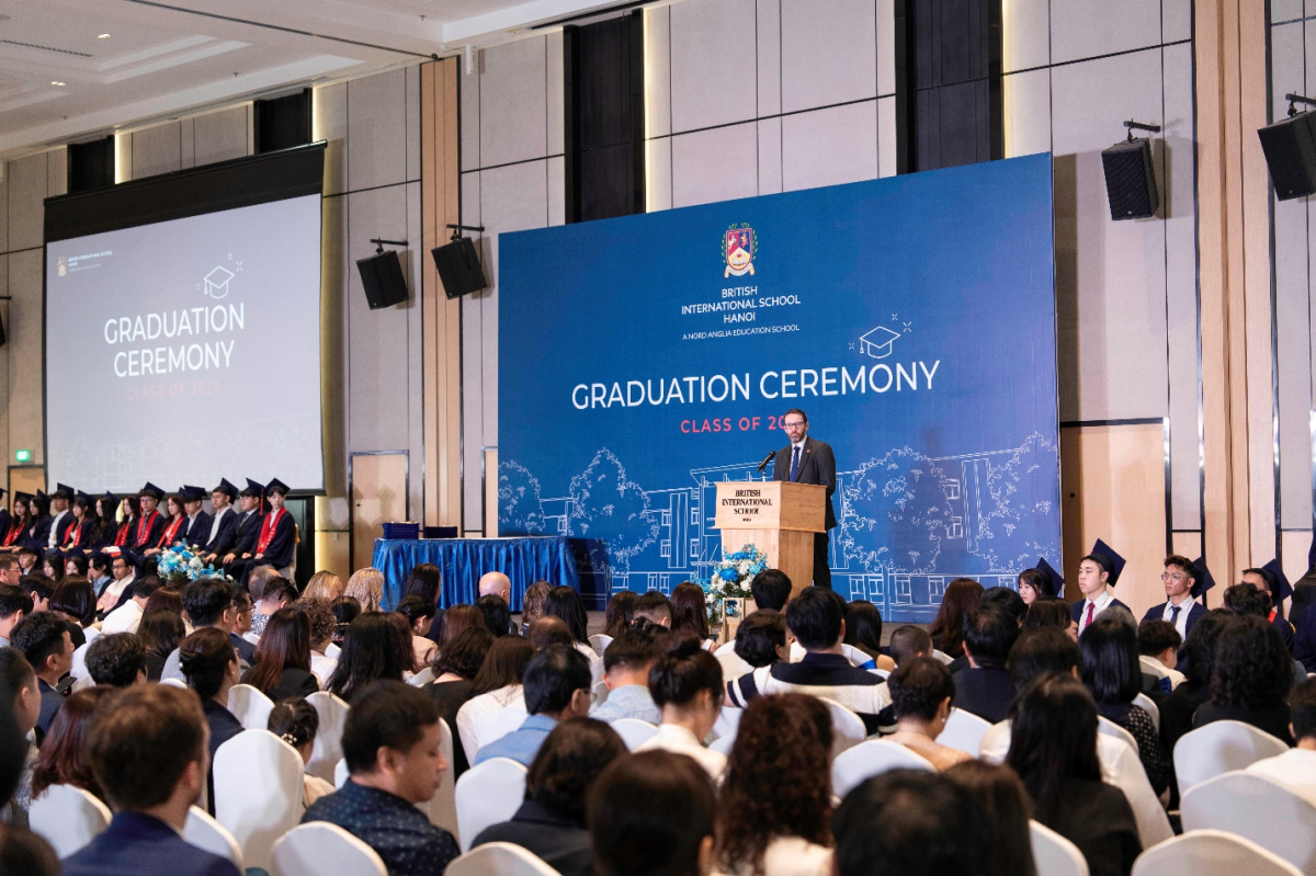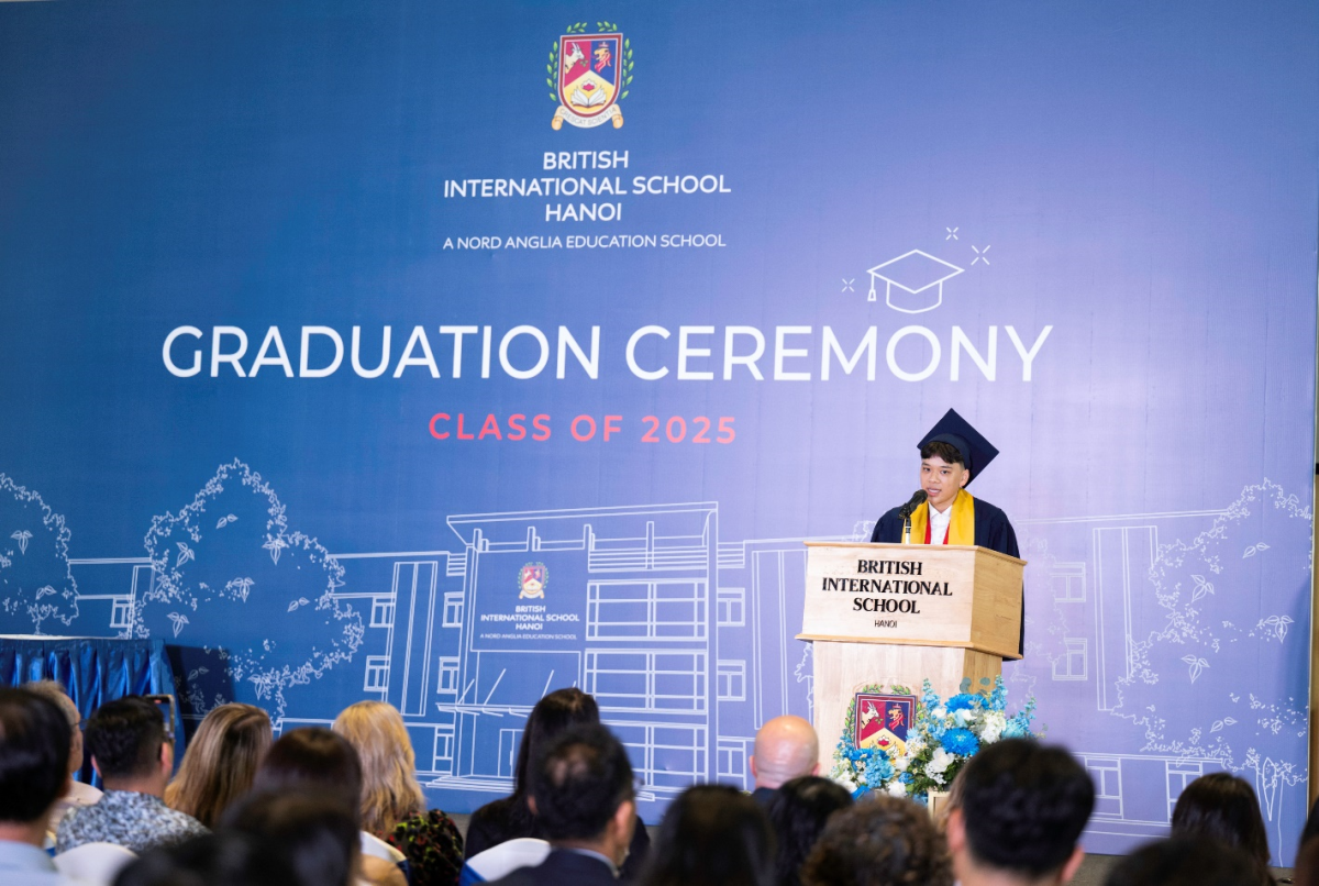 Dia mendorong para wisudawan untuk membawa nilai-nilai BIS Hanoi ke depan saat mereka memulai petualangan baru di universitas-universitas di seluruh dunia, termasuk di Britania Raya, Vietnam, dan tujuan-tujuan global lainnya.